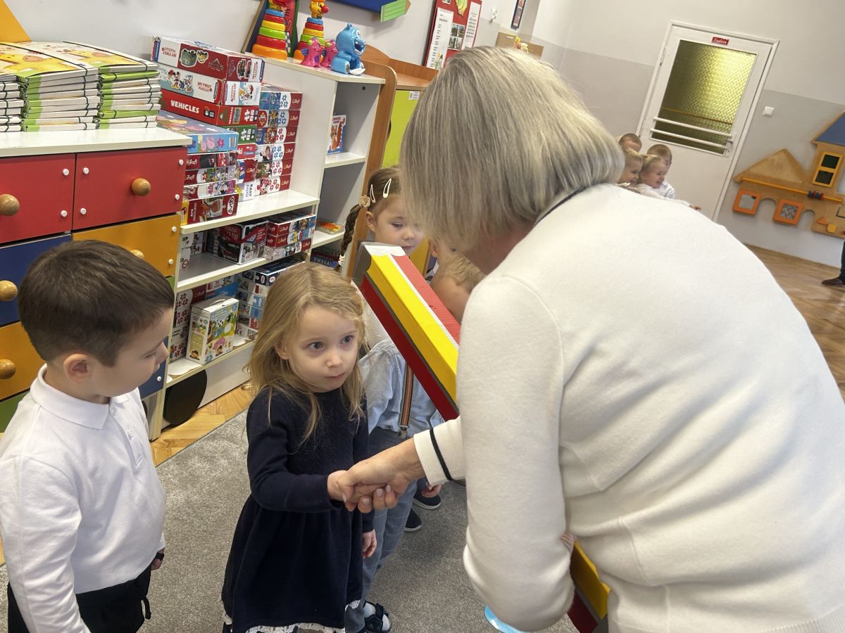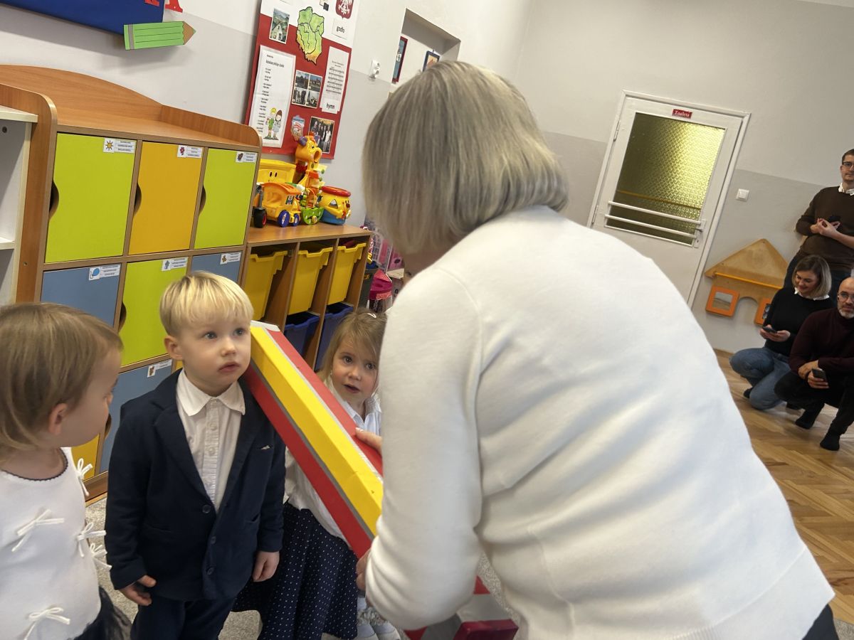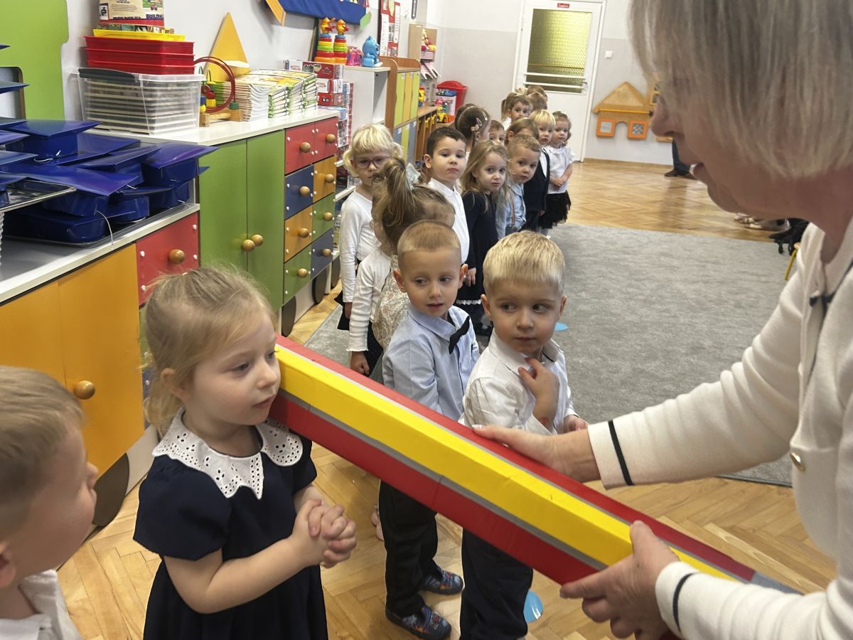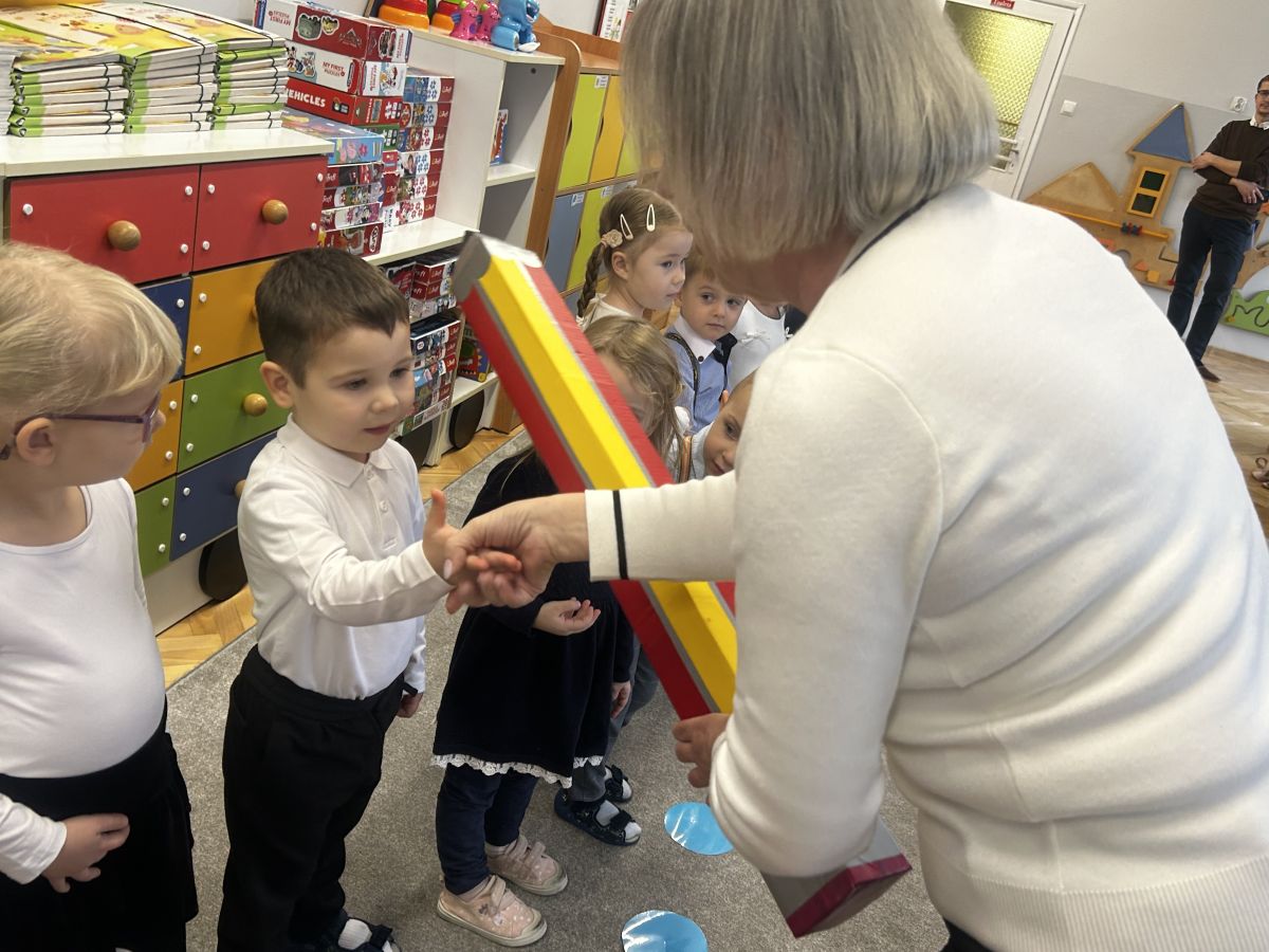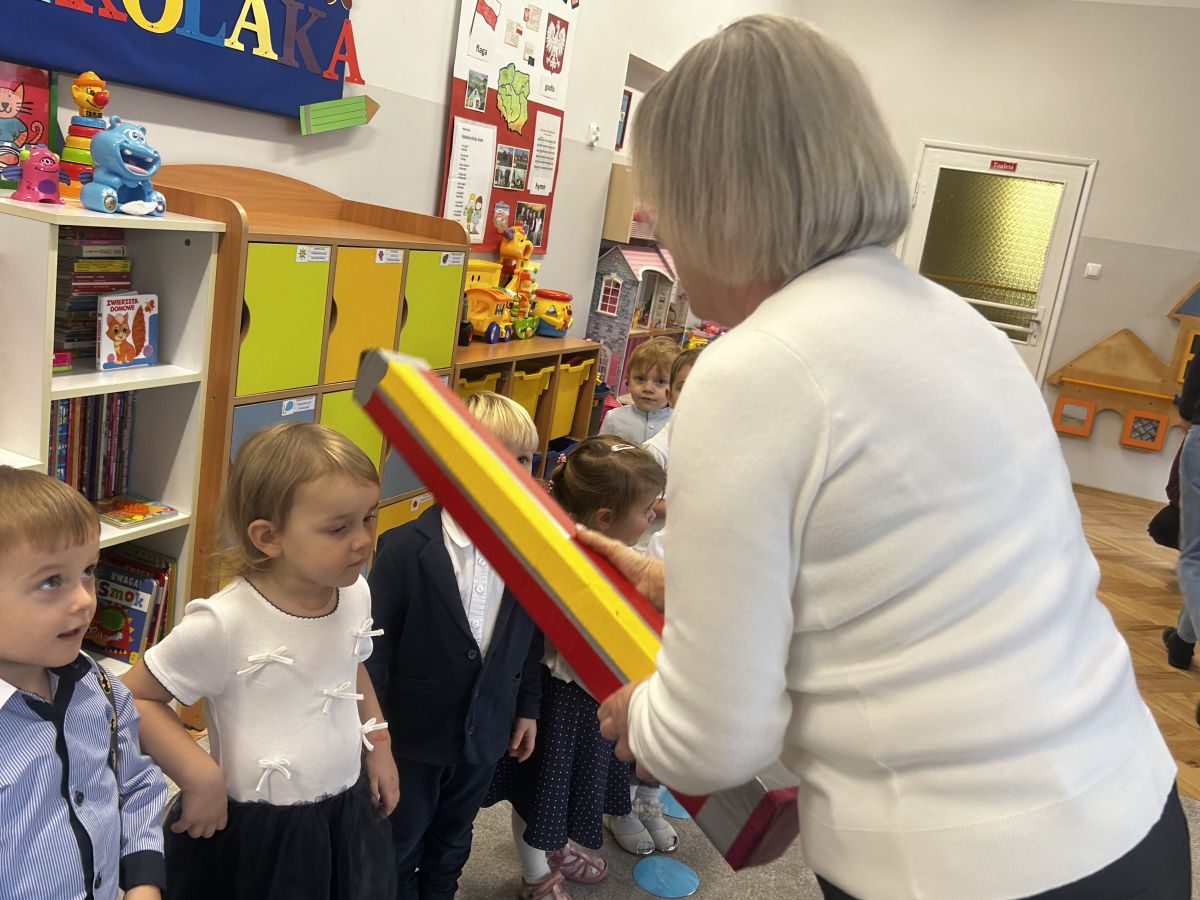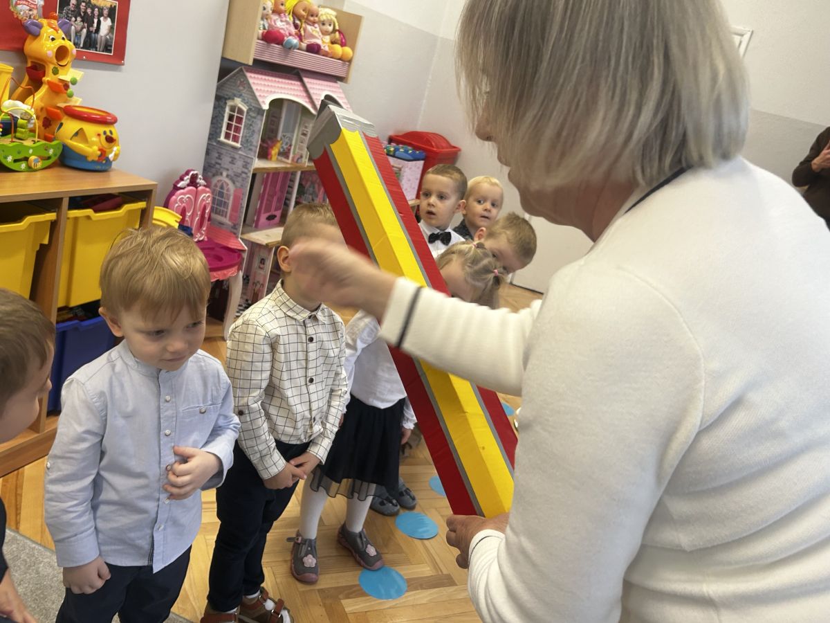 Następnie Pani Dyrektor, używając magicznej kredki, symbolicznie „zamieniła” każdego malucha w prawdziwego przedszkolaka. To piękny i pełen uroku gest, który na długo pozostanie w pamięci dzieci.