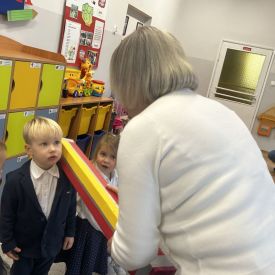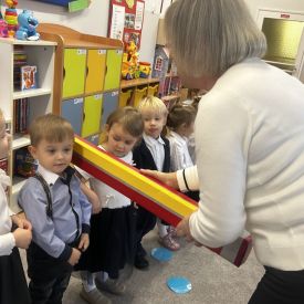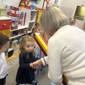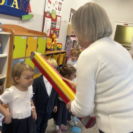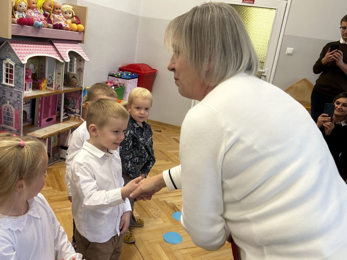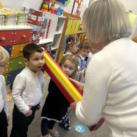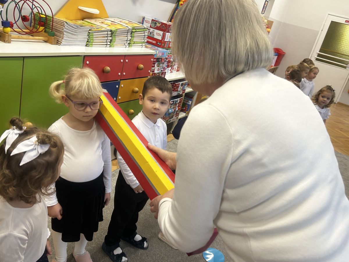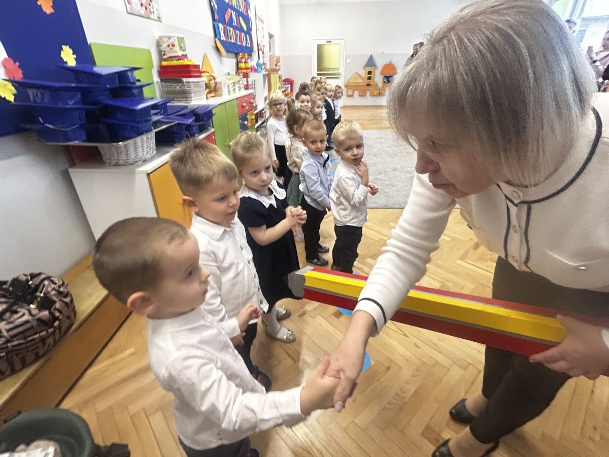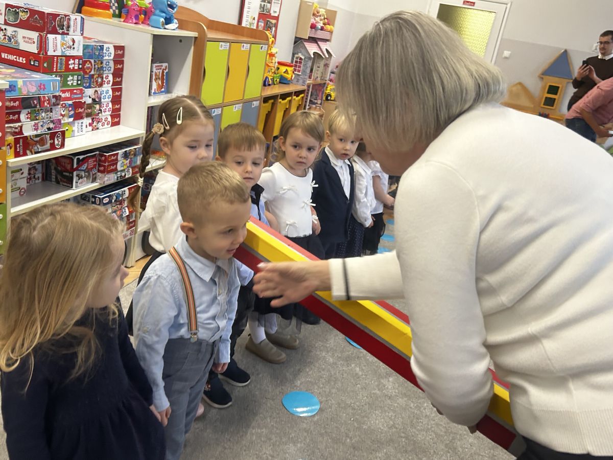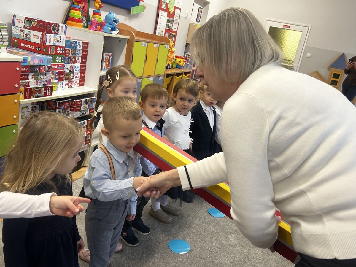 Następnie Pani Dyrektor, używając magicznej kredki, symbolicznie „zamieniła” każdego malucha w prawdziwego przedszkolaka. To piękny i pełen uroku gest, który na długo pozostanie w pamięci dzieci.