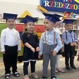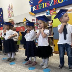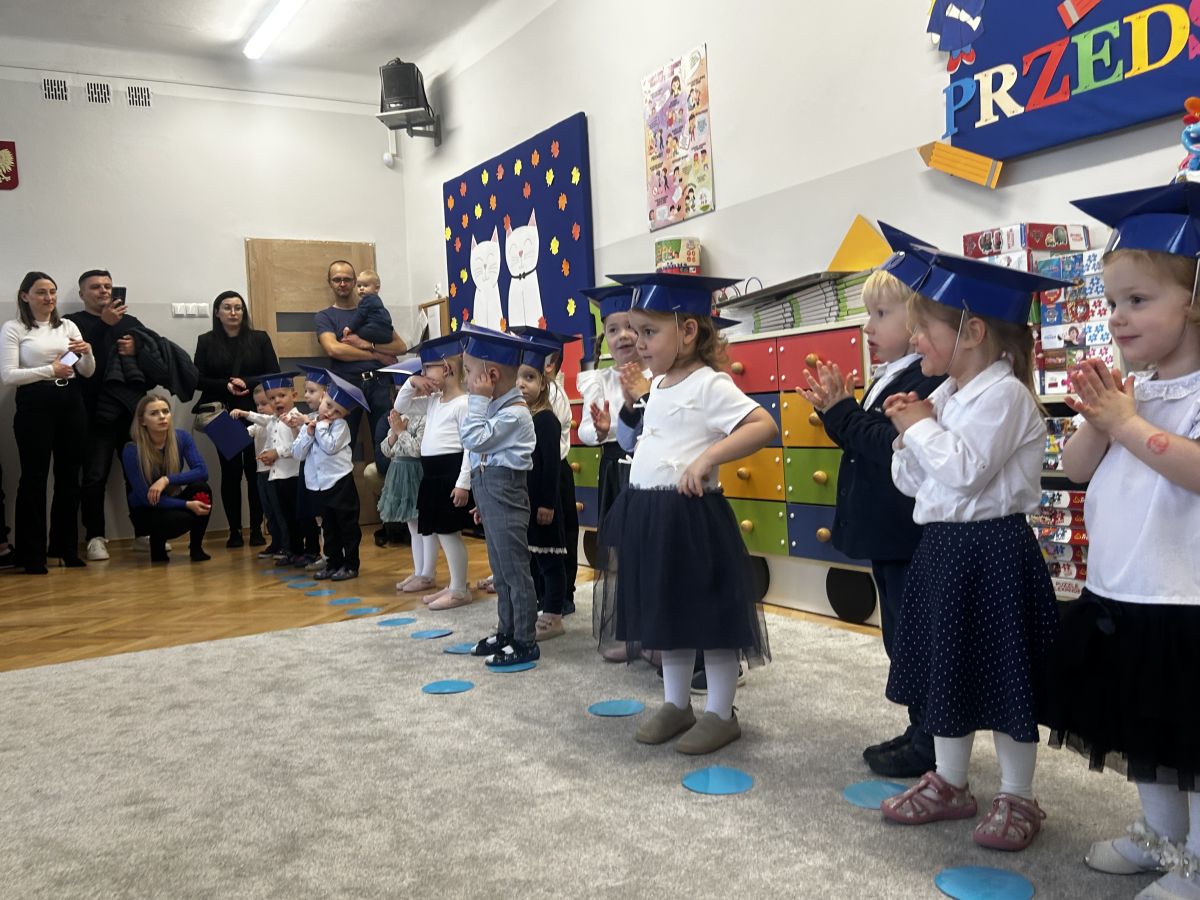 Na zakończenie uroczystości każdy przedszkolak otrzymał pamiątkowy biret oraz gratulacje.