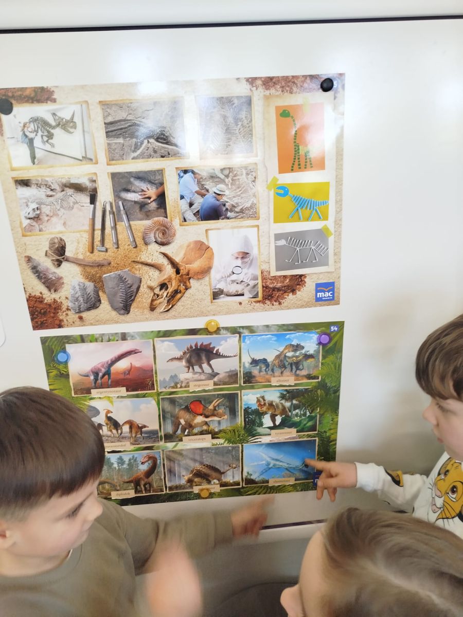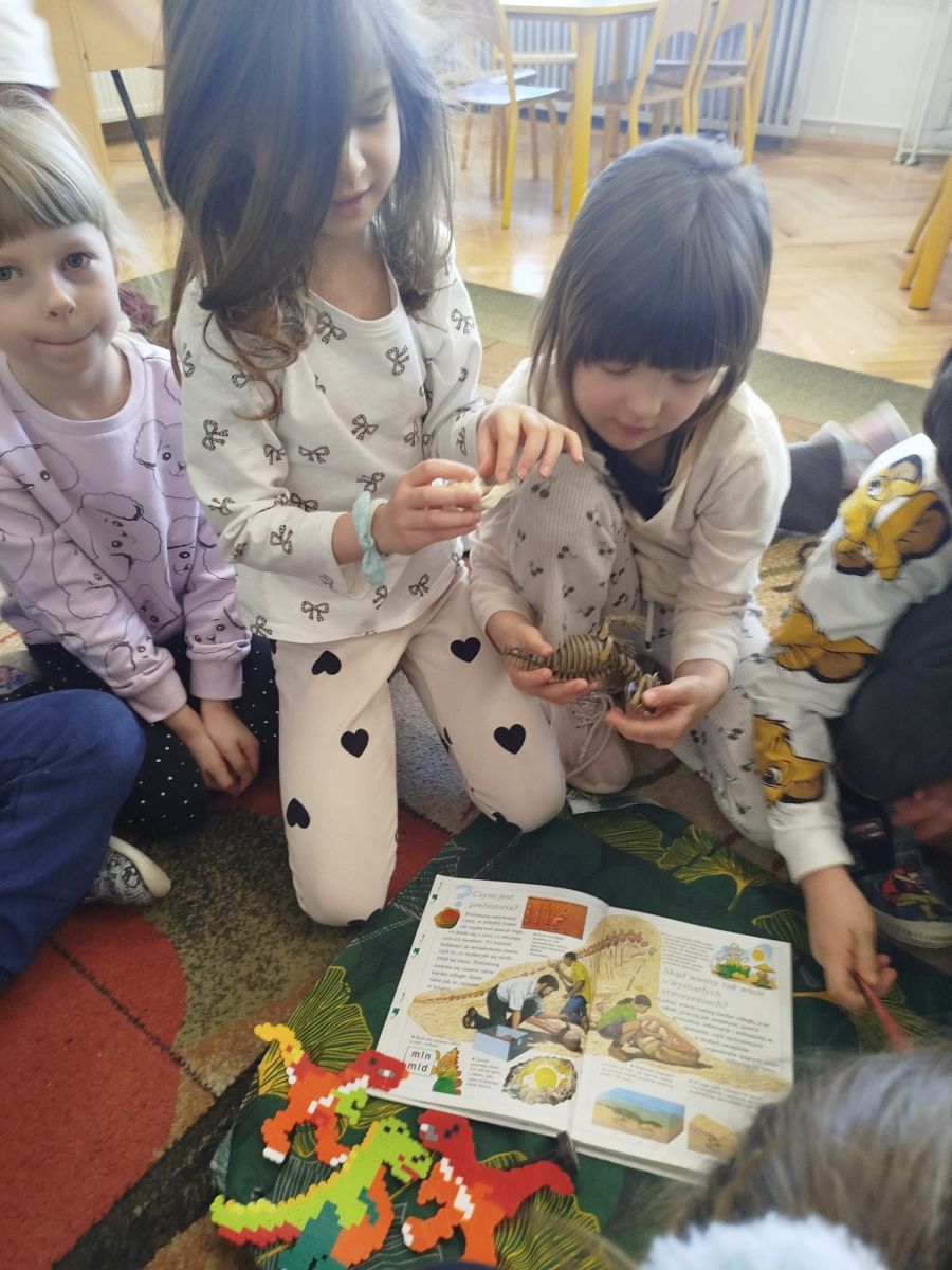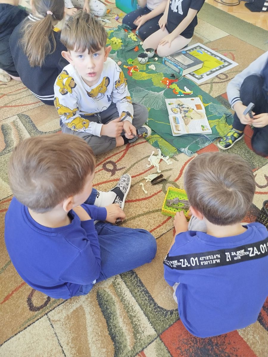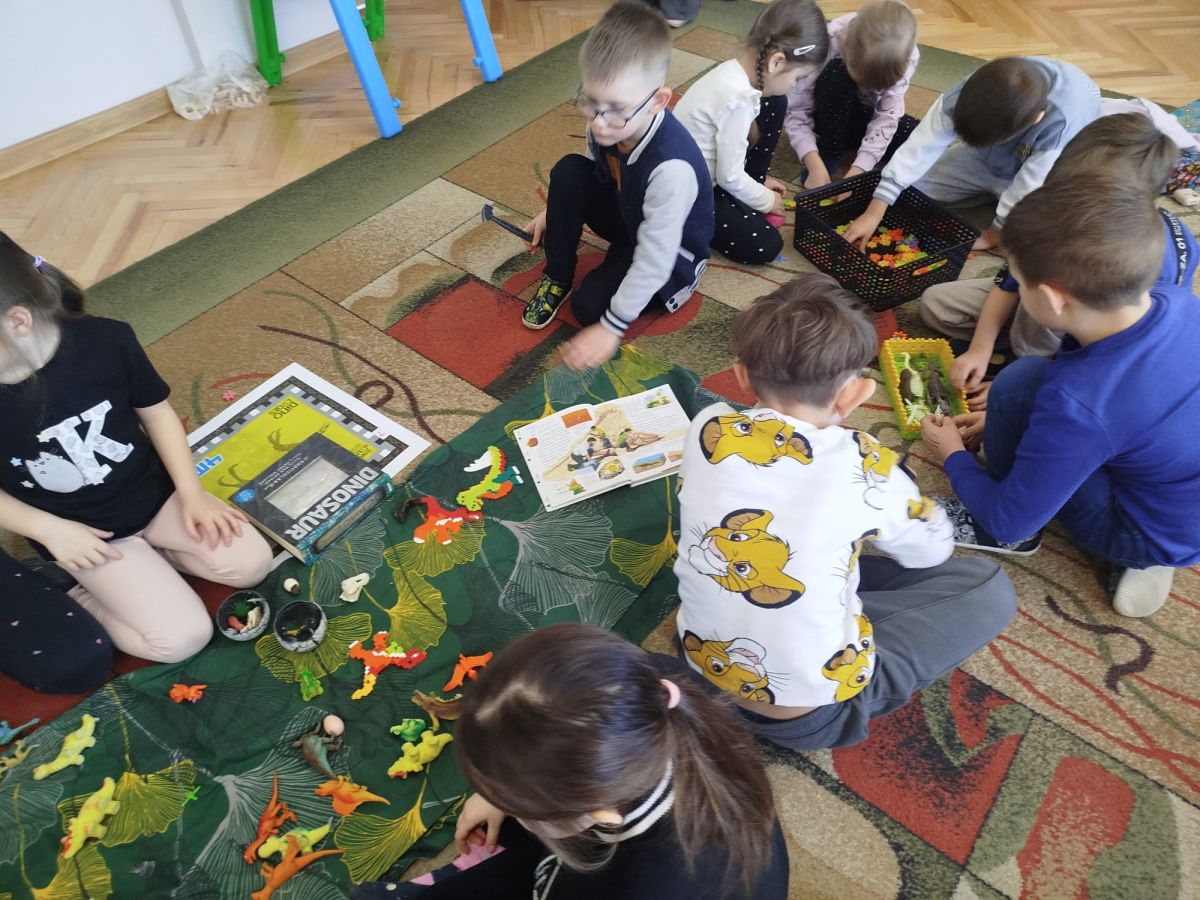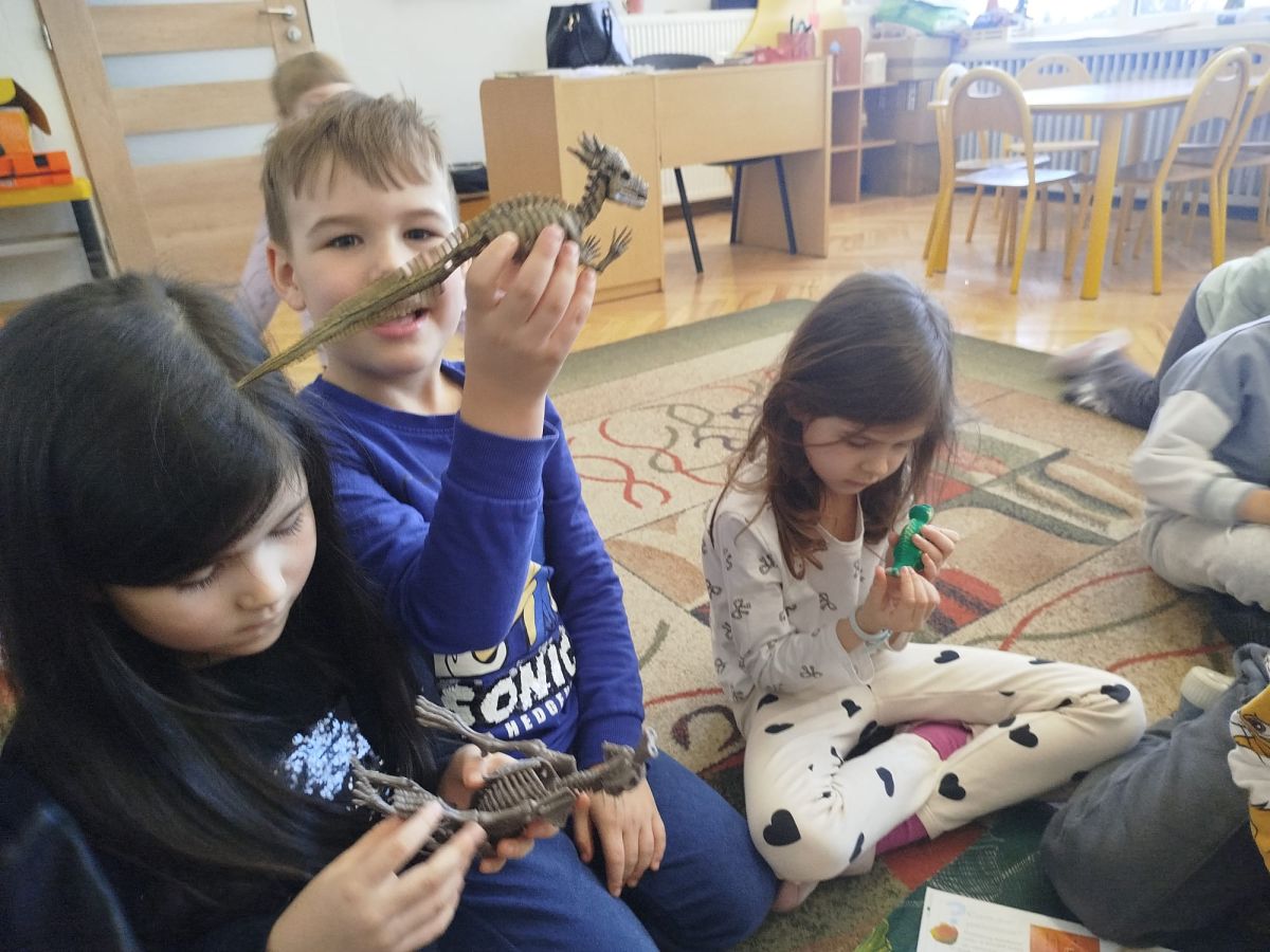 Podczas zajęć dowiedzieliśmy się, kim jest paleontolog i na czym polega jego praca. Wspólnie odkryliśmy, że paleontolog to naukowiec, który bada szczątki roślin i zwierząt sprzed milionów lat. Dzięki jego pracy możemy dziś podziwiać szkielety dinozaurów w muzeach i poznawać historię Ziemi.