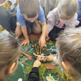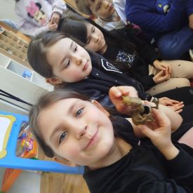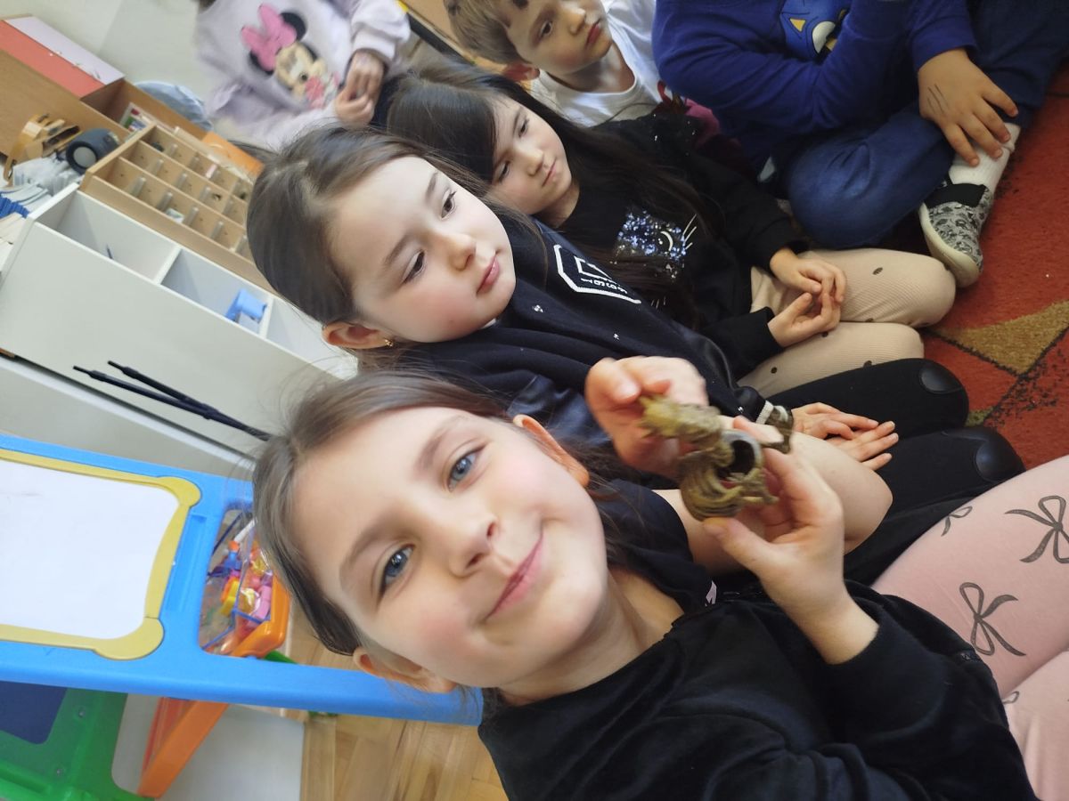 Rozmawialiśmy o tym, czy zawód paleontologa jest trudny. Dzieci szybko zauważyły, że to bardzo odpowiedzialna i wymagająca praca. Trzeba być przede wszystkim cierpliwym, ponieważ wydobywanie kości z ziemi trwa bardzo długo. Niezbędna jest także dokładność i precyzja, aby nie uszkodzić cennych znalezisk. Paleontolog musi być również spostrzegawczy, wytrwały i gotowy do pracy w różnych warunkach – czasem w słońcu, czasem w wietrze, a nawet na pustyni! To zawód dla osób ciekawych świata, które lubią odkrywać tajemnice przeszłości.