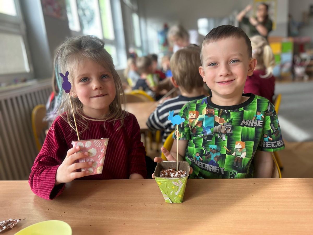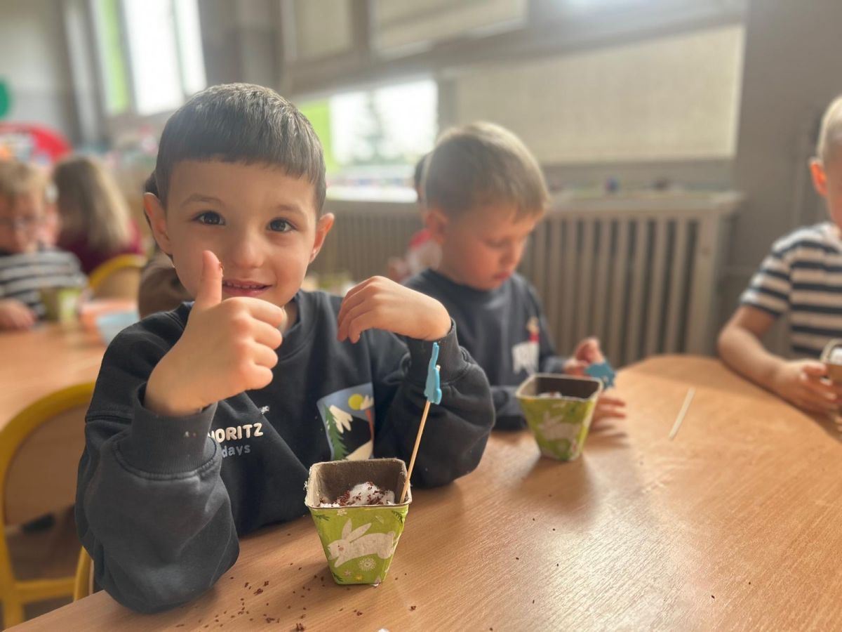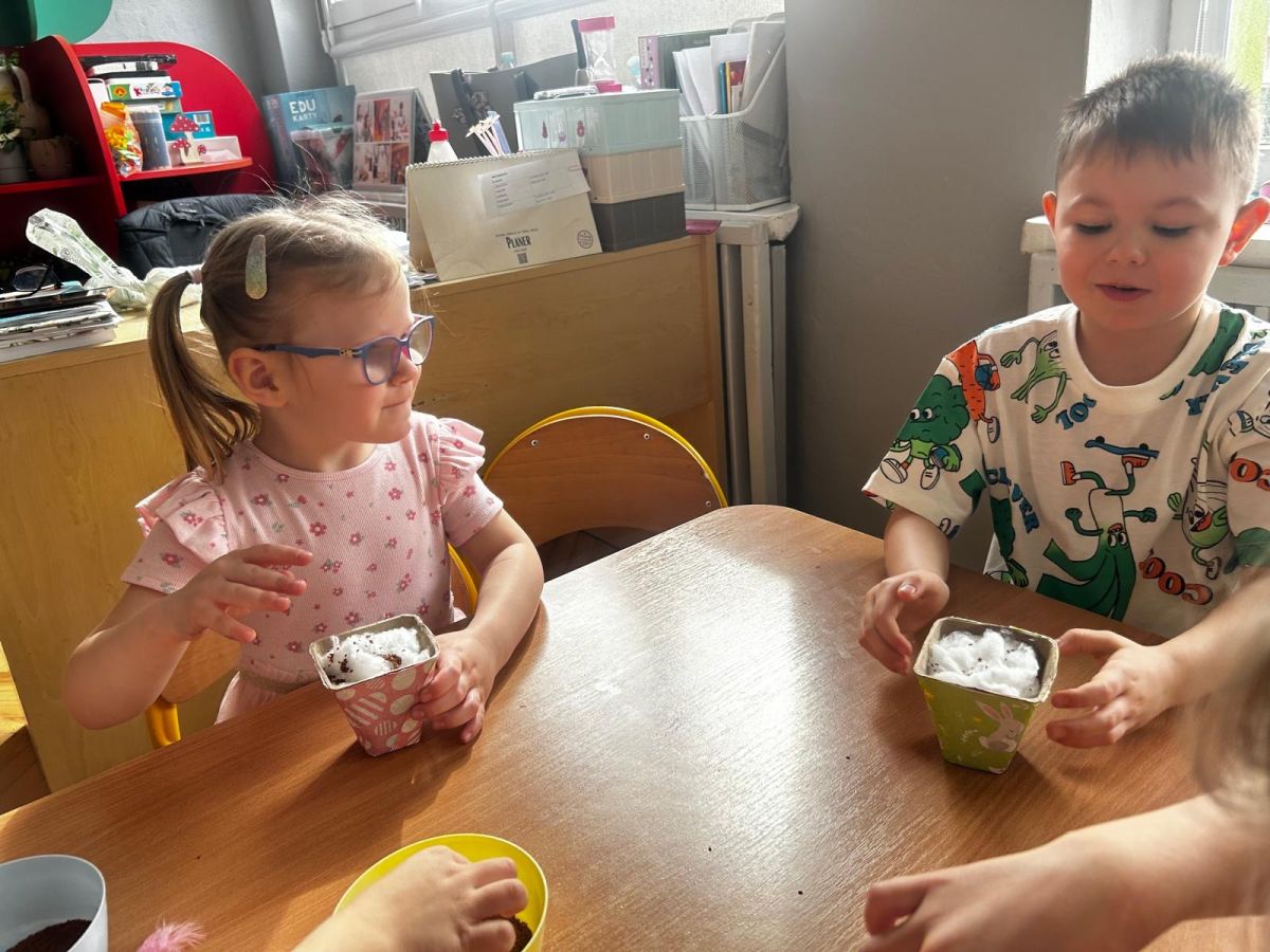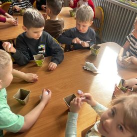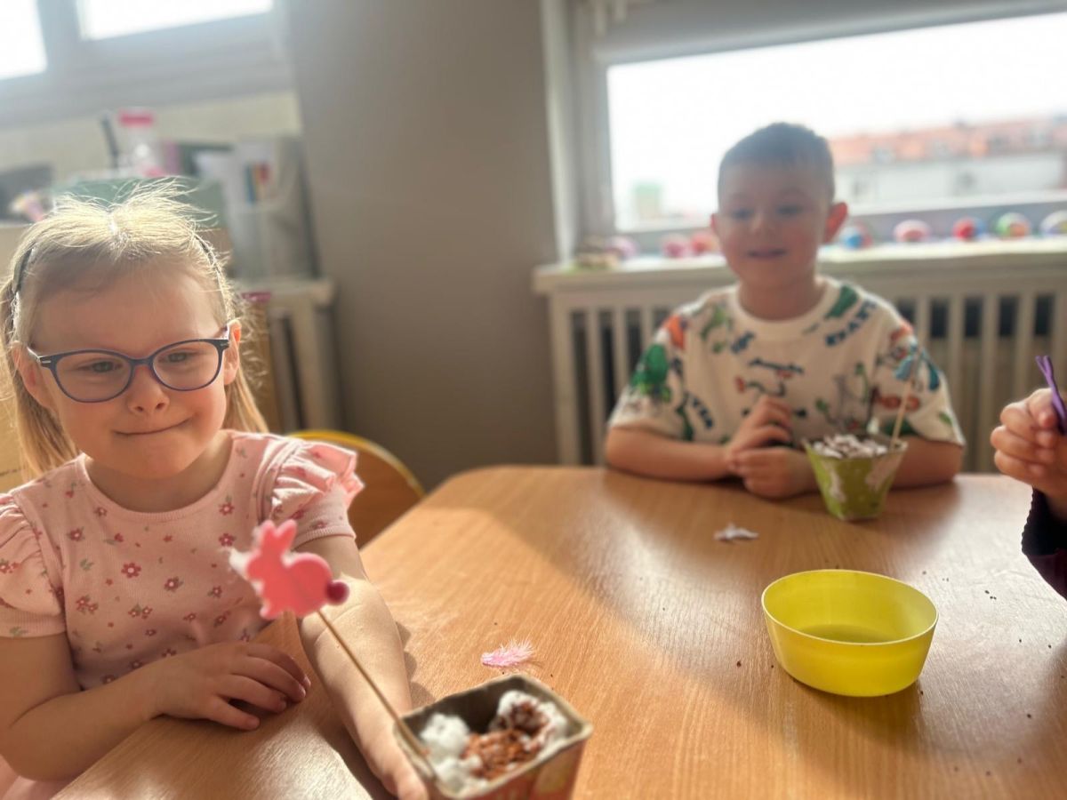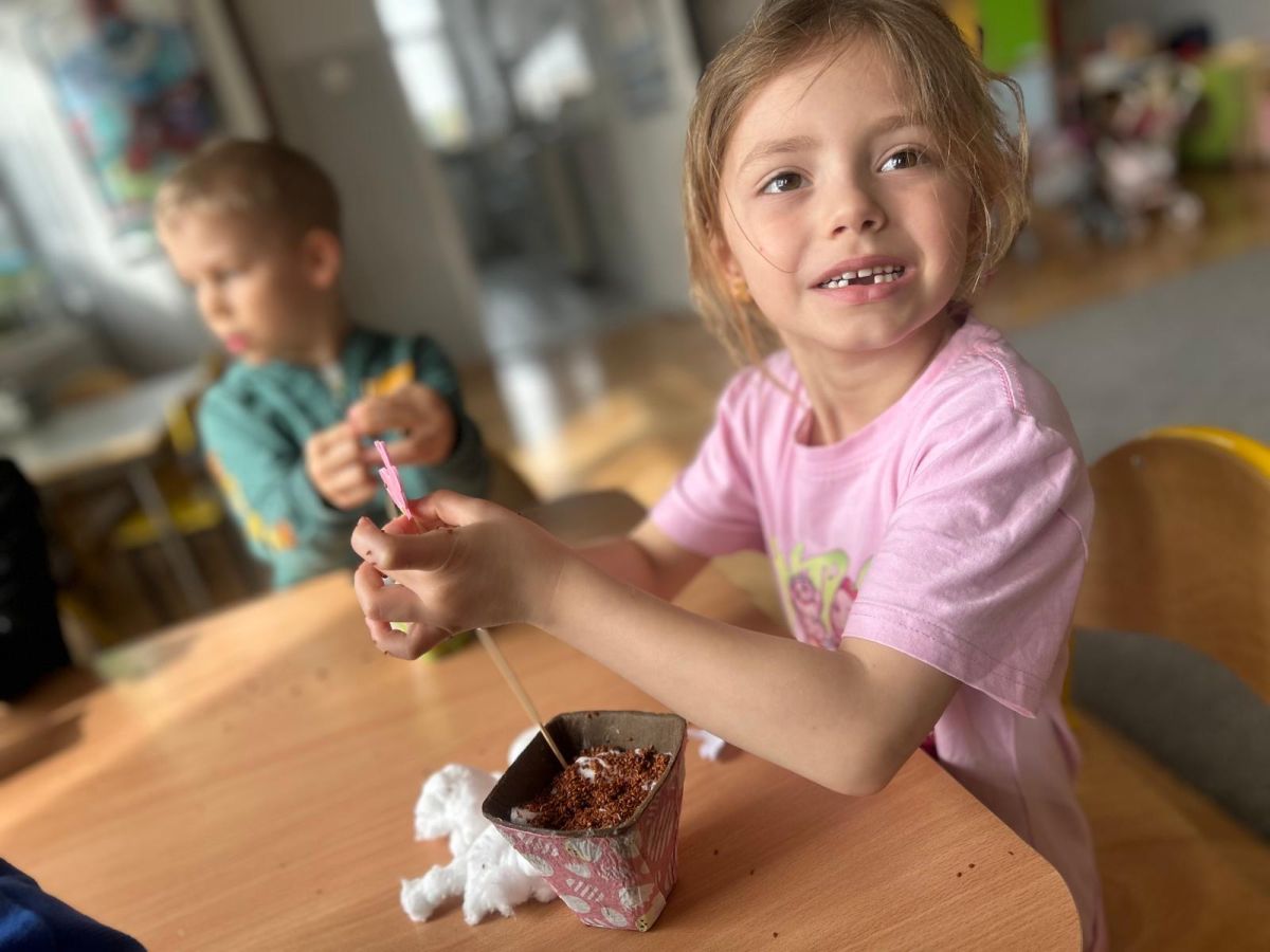 W naszym przedszkolu rozpoczęliśmy radosne przygotowania do świąt Wielkanocnych. Dzieci ze Smerfów z ogromnym zaangażowaniem tworzyły kolorowe, ozdobne pisanki, wykorzystując mazaki i inne materiały plastyczne. Każde jajko stało się małym dziełem sztuki, pełnym barw i dziecięcej wyobraźni. Nie zabrakło także tradycyjnego sadzenia rzeżuchy, które zawsze budzi wśród dzieci dużo ciekawości. Smerfy z dumą obserwują, jak z małych ziarenek wyrasta zielona pachnąca rzeżucha – symbol wiosny i nowego życia.