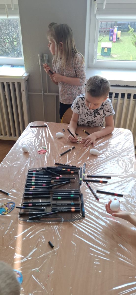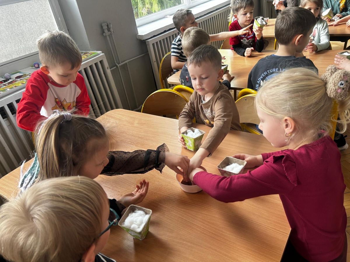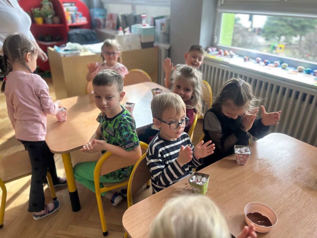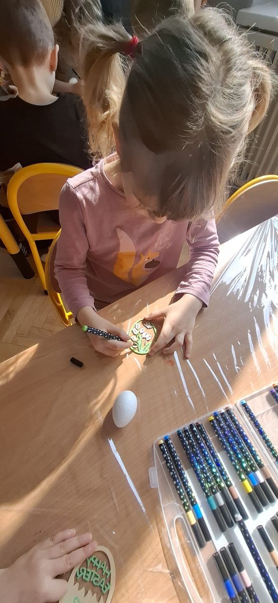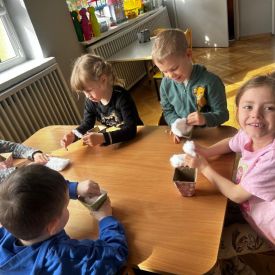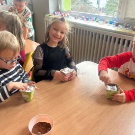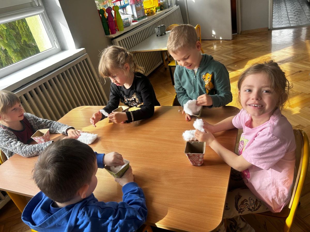 W naszym przedszkolu rozpoczęliśmy radosne przygotowania do świąt Wielkanocnych. Dzieci ze Smerfów z ogromnym zaangażowaniem tworzyły kolorowe, ozdobne pisanki, wykorzystując mazaki i inne materiały plastyczne. Każde jajko stało się małym dziełem sztuki, pełnym barw i dziecięcej wyobraźni. Nie zabrakło także tradycyjnego sadzenia rzeżuchy, które zawsze budzi wśród dzieci dużo ciekawości. Smerfy z dumą obserwują, jak z małych ziarenek wyrasta zielona pachnąca rzeżucha – symbol wiosny i nowego życia.