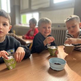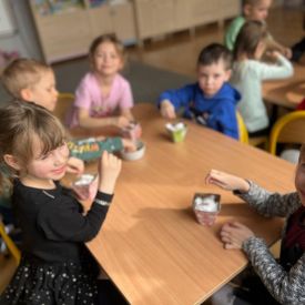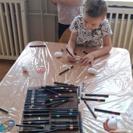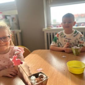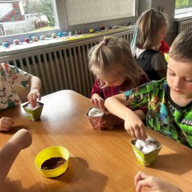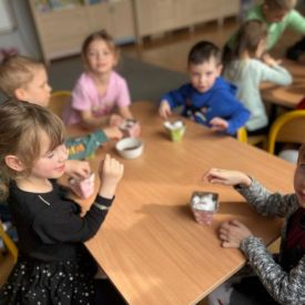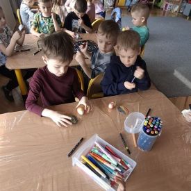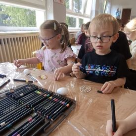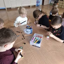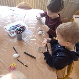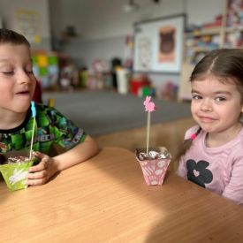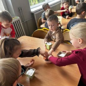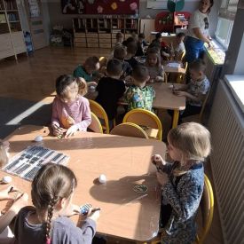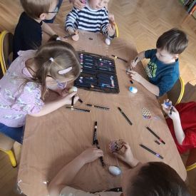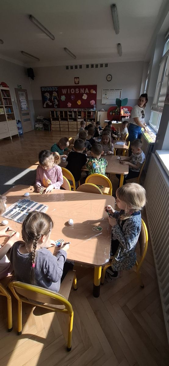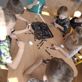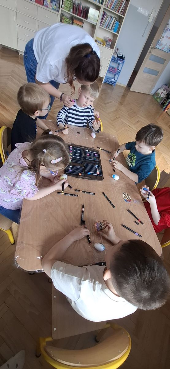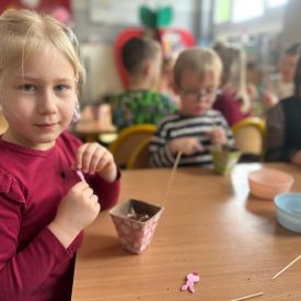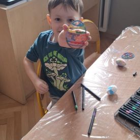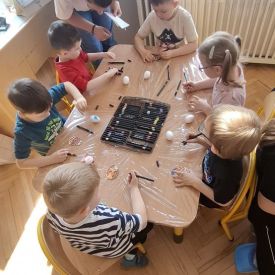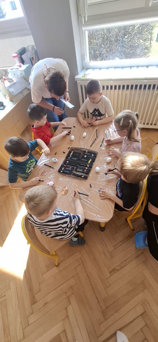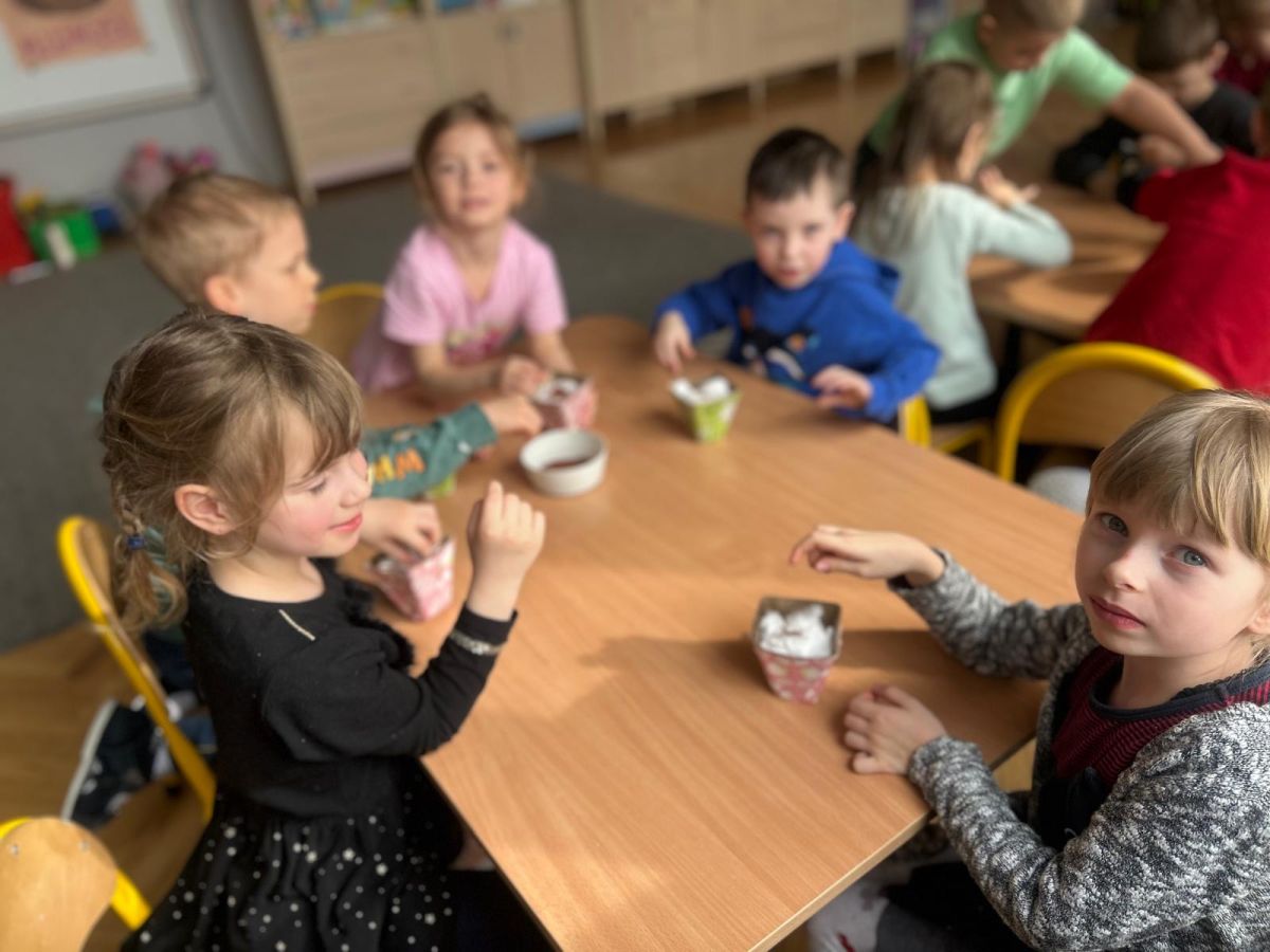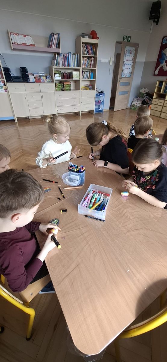 W naszym przedszkolu rozpoczęliśmy radosne przygotowania do świąt Wielkanocnych. Dzieci ze Smerfów z ogromnym zaangażowaniem tworzyły kolorowe, ozdobne pisanki, wykorzystując mazaki i inne materiały plastyczne. Każde jajko stało się małym dziełem sztuki, pełnym barw i dziecięcej wyobraźni. Nie zabrakło także tradycyjnego sadzenia rzeżuchy, które zawsze budzi wśród dzieci dużo ciekawości. Smerfy z dumą obserwują, jak z małych ziarenek wyrasta zielona pachnąca rzeżucha – symbol wiosny i nowego życia.