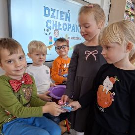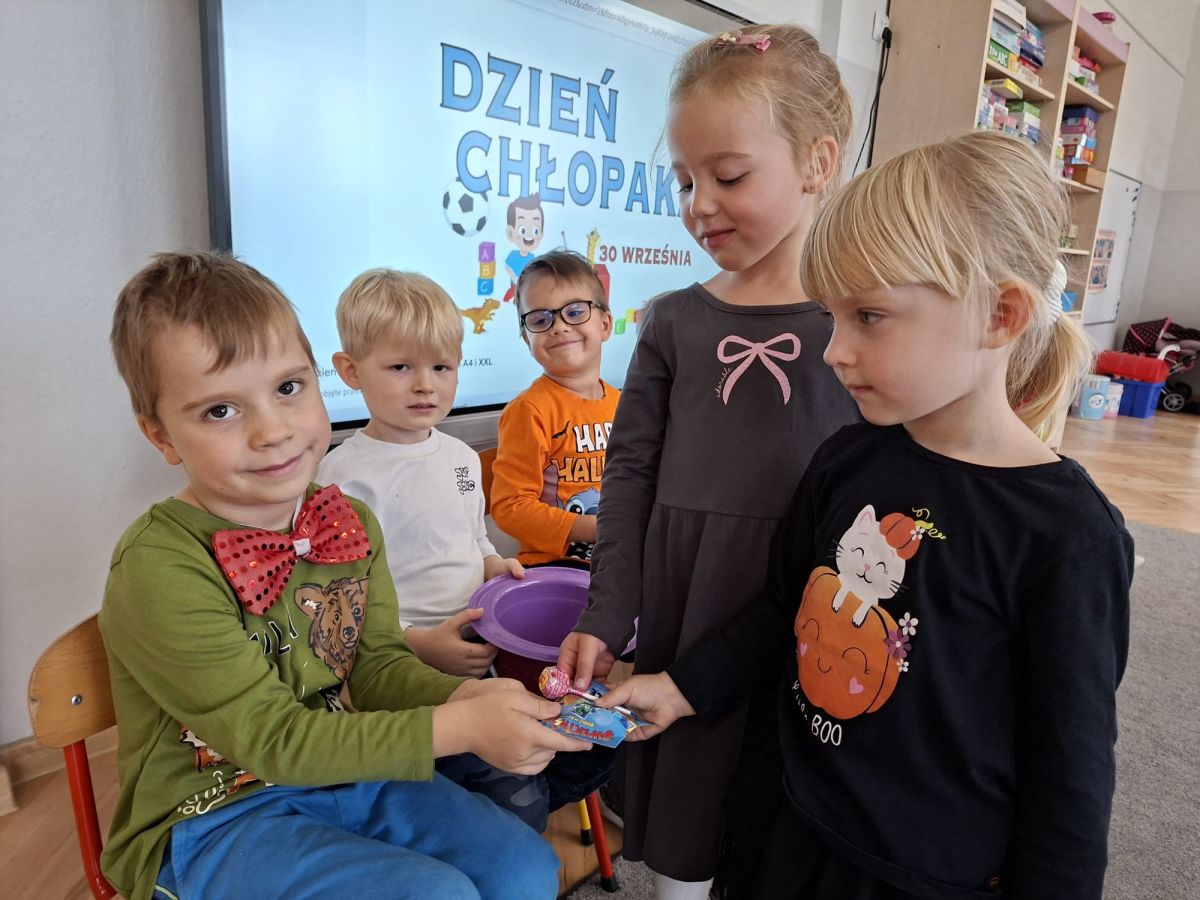 30 września obchodziliśmy w naszym przedszkolu Dzień Chłopaka. Z tej okazji dziewczynki zaśpiewały chłopcom gromkie „Sto lat!”, złożyły im serdeczne życzenia i wręczyły drobne upominki. Chłopcy czuli się wyjątkowo i z uśmiechem przyjęli przygotowane niespodzianki.