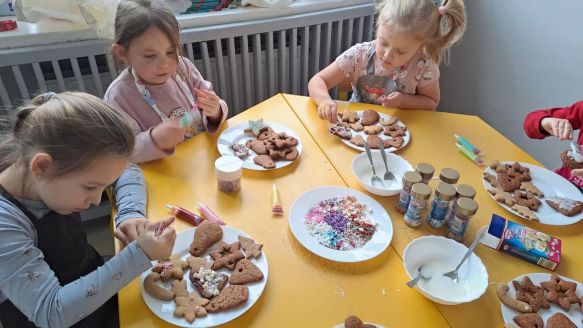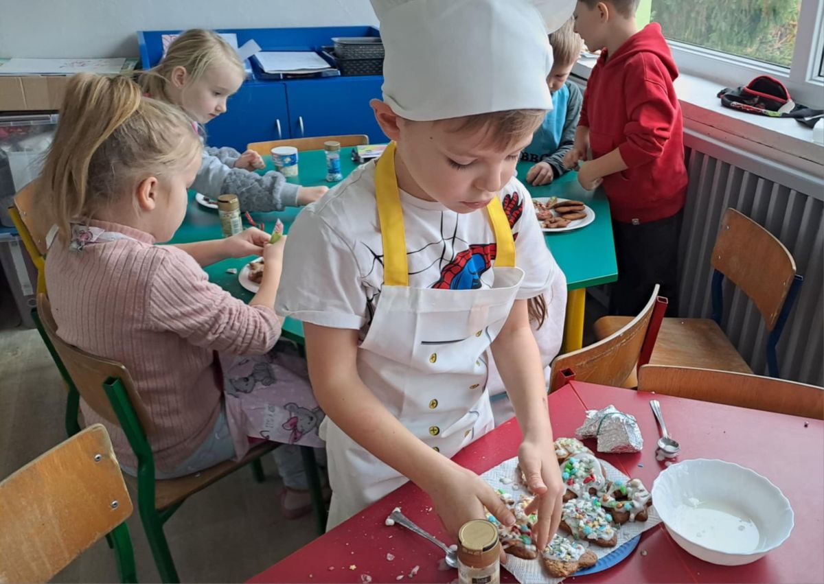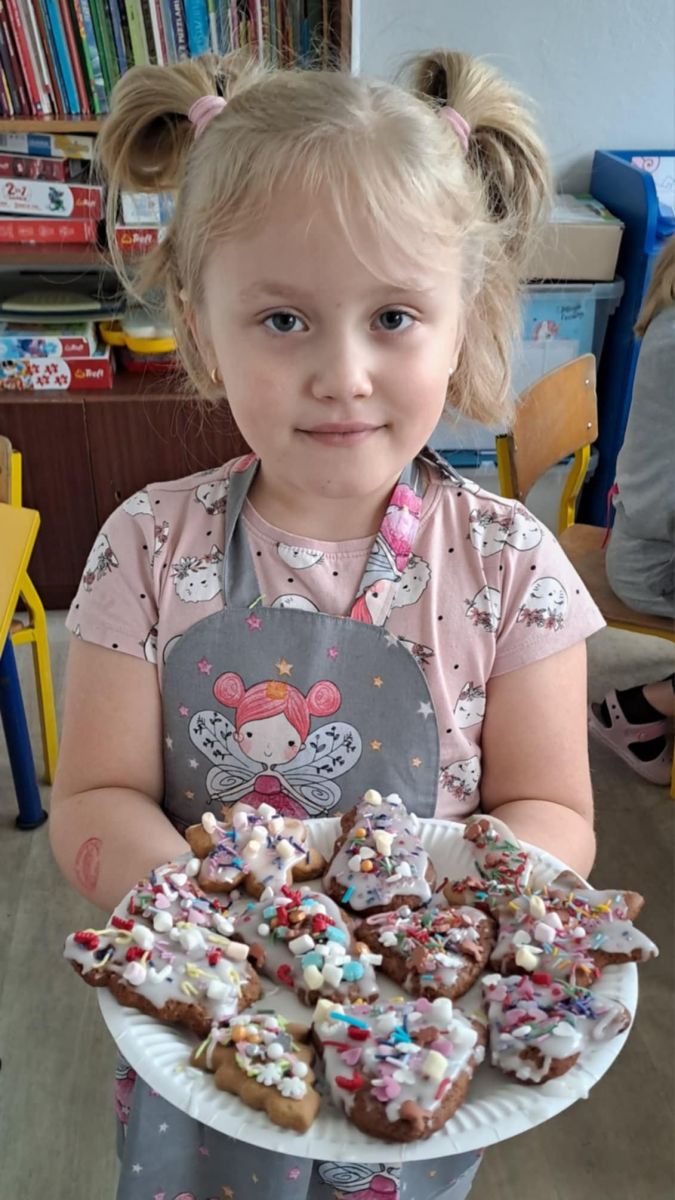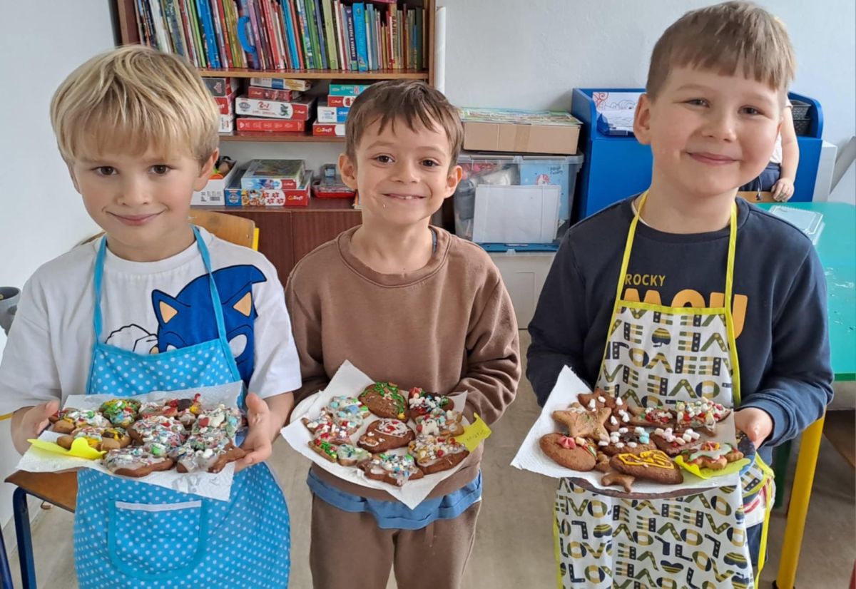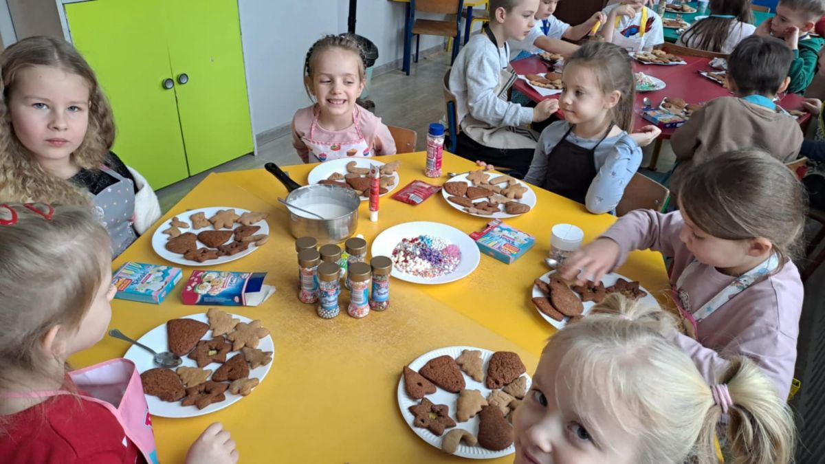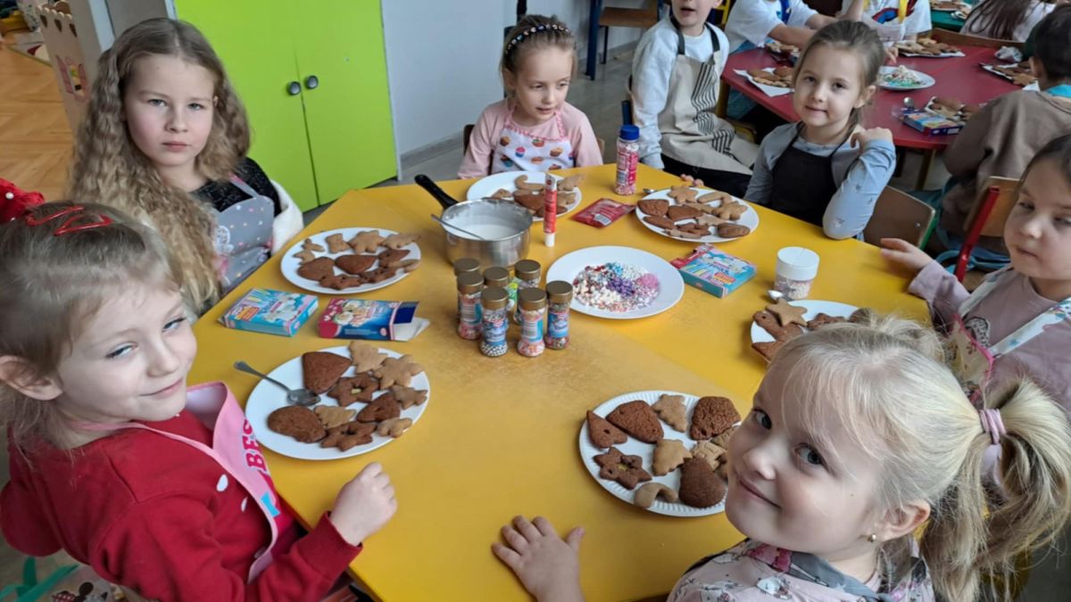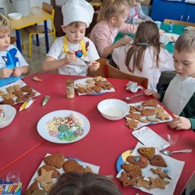 Przedszkolaki wykazały się dużą kreatywnością i precyzją, a każdy piernik stał się małym, słodkim dziełem sztuki. W sali unosił się zapach korzennych przypraw, a uśmiechy dzieci były najlepszym dowodem na to, że wspólne przygotowania do świąt sprawiają wiele radości – nawet jeśli te święta są jeszcze przed nami.