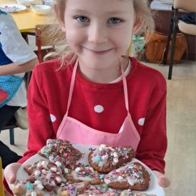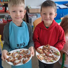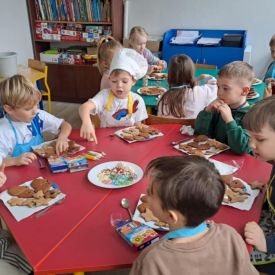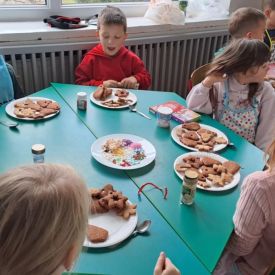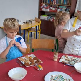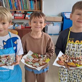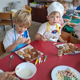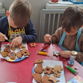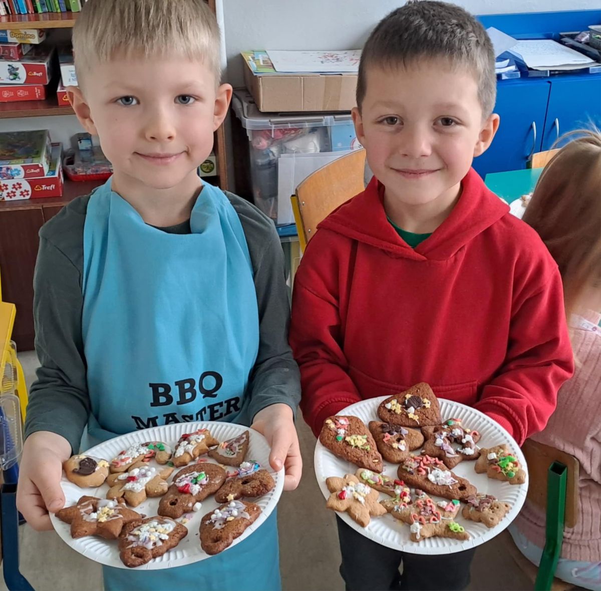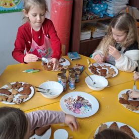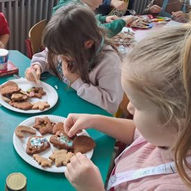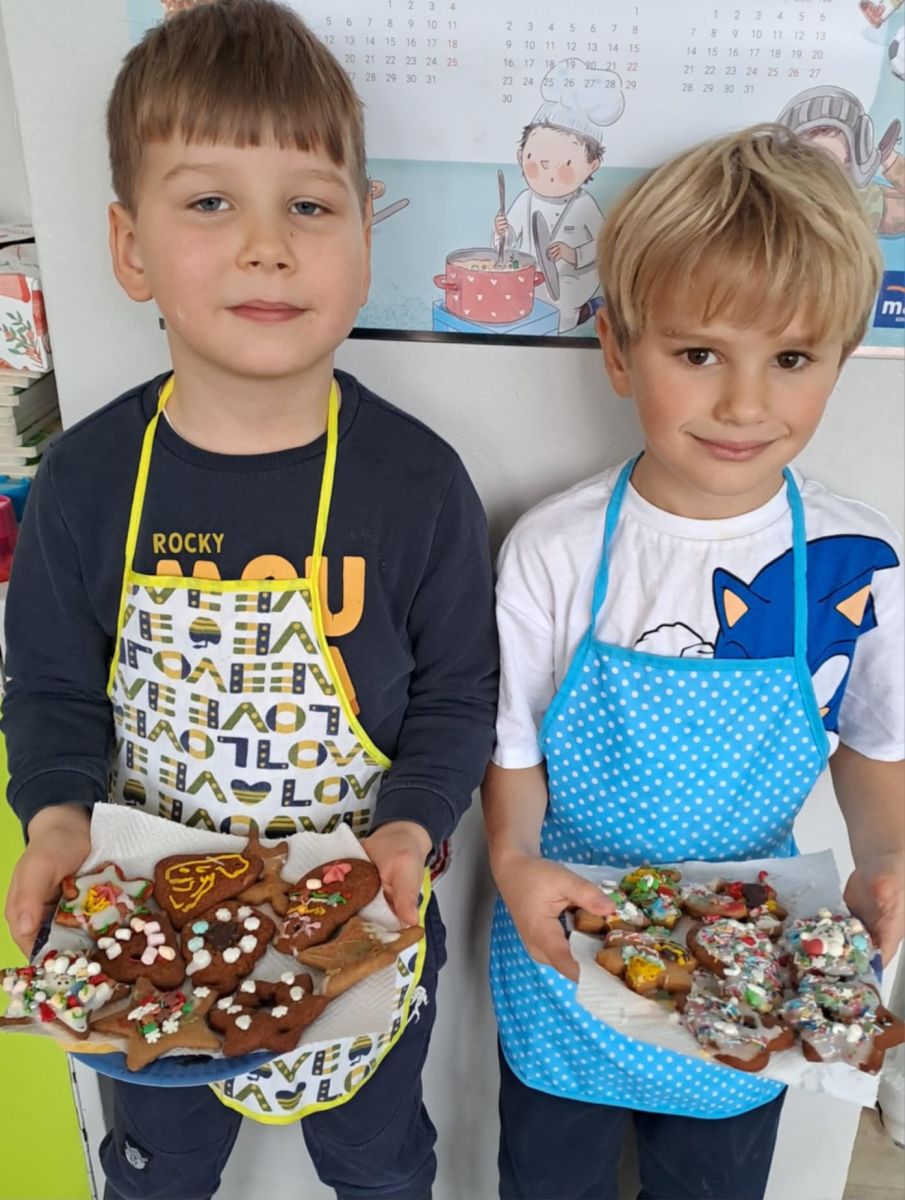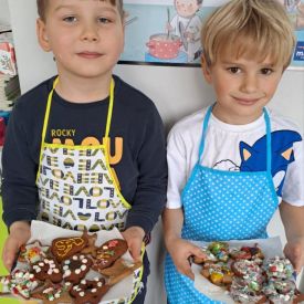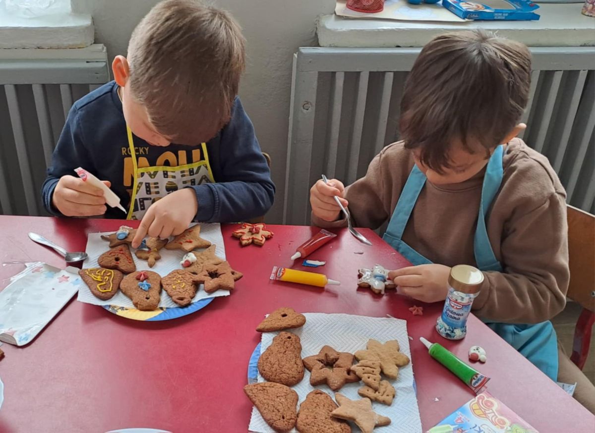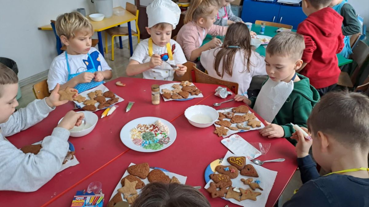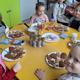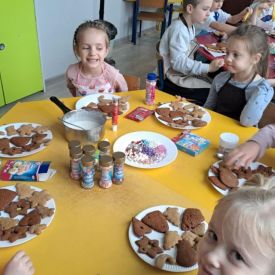 Przedszkolaki wykazały się dużą kreatywnością i precyzją, a każdy piernik stał się małym, słodkim dziełem sztuki. W sali unosił się zapach korzennych przypraw, a uśmiechy dzieci były najlepszym dowodem na to, że wspólne przygotowania do świąt sprawiają wiele radości – nawet jeśli te święta są jeszcze przed nami.