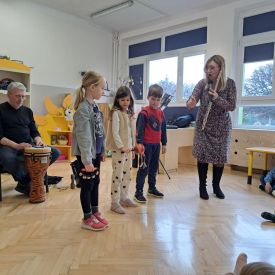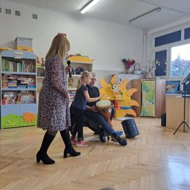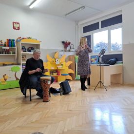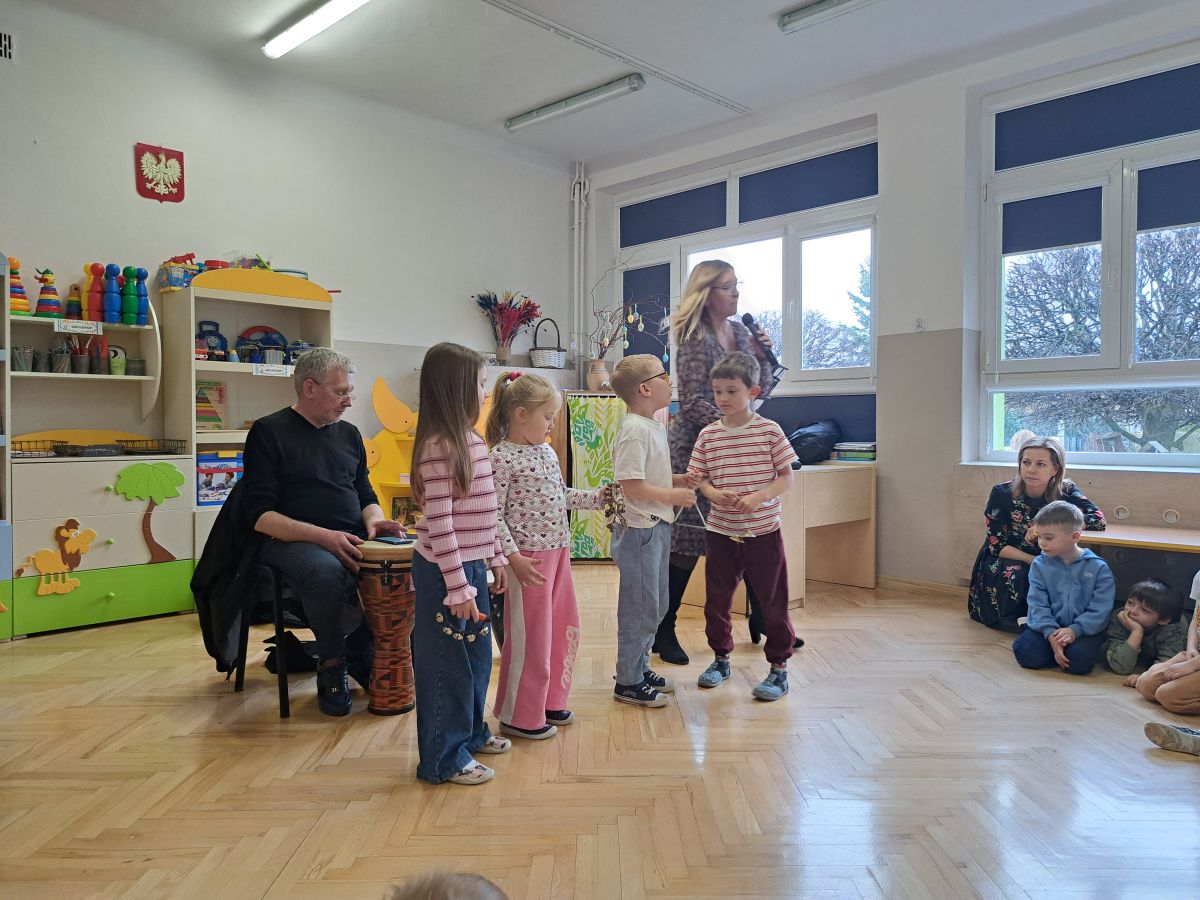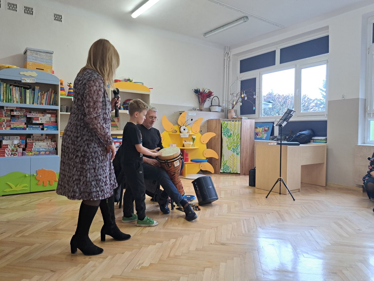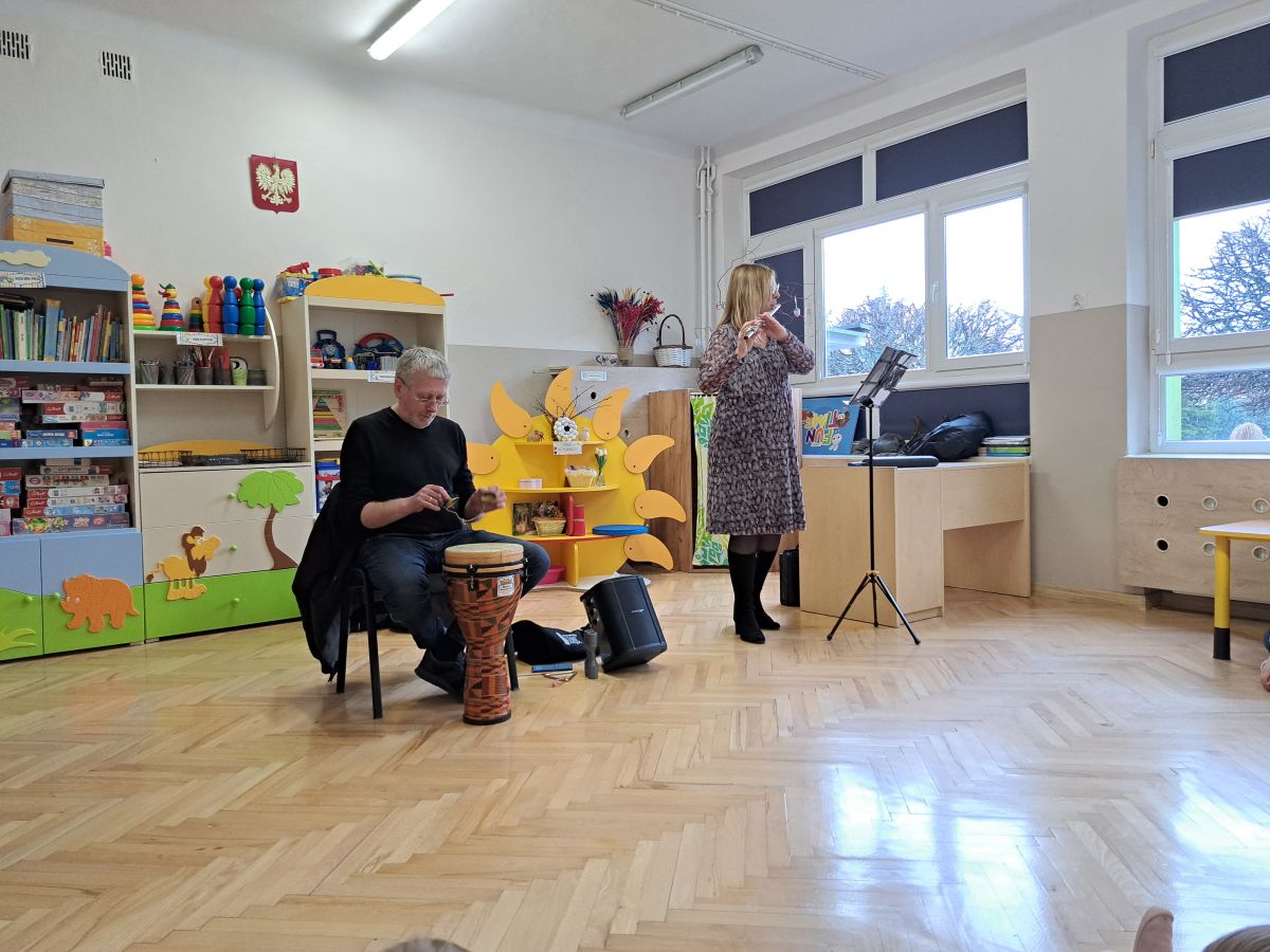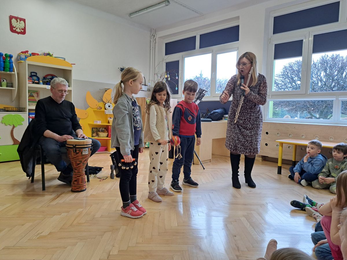 Dużym zainteresowaniem cieszyła się prezentacja instrumentów muzycznych. Dzieci poznały brzmienie oraz budowę djembe – afrykańskiego bębna o charakterystycznym, głębokim dźwięku – oraz fletu poprzecznego, którego delikatne tony wprowadziły wszystkich w spokojny, harmoniczny nastrój.